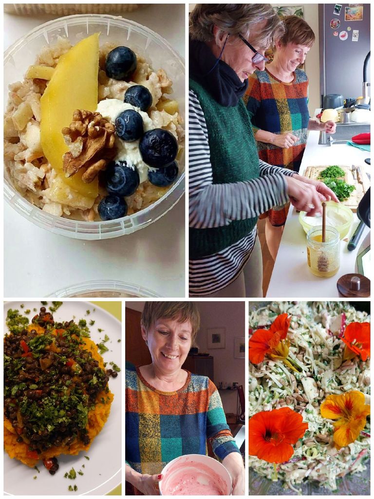 Auf dem Speiseplan stand das Frischkorngericht - ein Müsli der besonderen Art, ein Blumenkohl-Lauch-Salat, eine Pastinaken-Apfel-Suppe, Belugalinsen mit Möhrenpüree Marrakesch und zum Dessert ein Himbeer-Creme-Triffle.